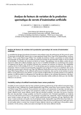 Analyse de facteurs de variation de la production spermatique de verrats d'insémination artificielle