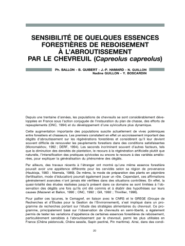 Sensibilité de quelques essences forestières de reboisement à l'abroutissement par le Chevreuil (Capreolus capreolus).