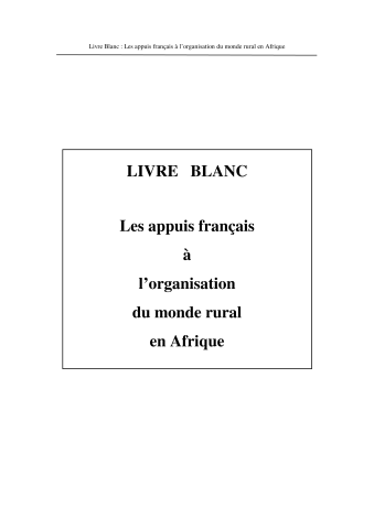 Livre Blanc : Les appuis français à l’organisation du monde rural en Afrique