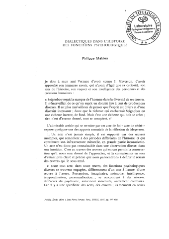 Malrieu P (1987) - Dialectique dans l'histoire des fonctions psychologiques.pdf