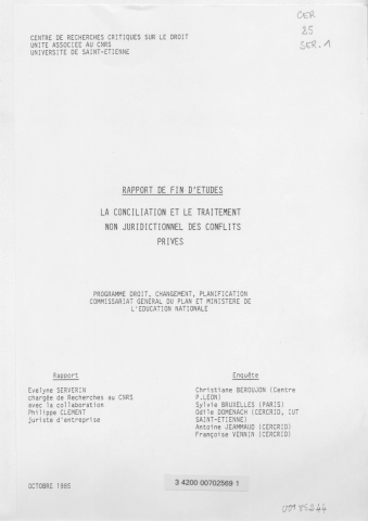 Résumé : Décrit et analyse certaines formes juridiques et pratiques sociales relatives au traitement non juridictionnel des conflits.