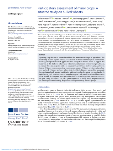 - Auteurs : Sofía CorreaMathieu ThomasJustine LepagneulAubin DémontéC.R. B.A.Pierre BerthetJean-Philippe ClairChristian DalmassoCédric MaryDenis MignardHonorine PérinoMarie-Pierre RépécaudStéphane RouvèsLéa BernardGustave FradinCamille Vindras-FouilletJean-François VianOlivier HamantMarie-Thérèse Charreyre