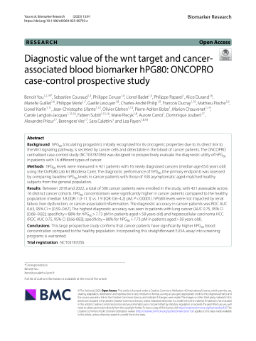 Diagnostic value of the wnt target and cancer-associated blood biomarker hPG80: ONCOPRO case-control prospective study