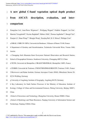Xiangzhuo LiuWigneron J.-P.Wolfgang WagnerFrédéric FrappartLei FanMariette VreugdenhilNicolas BaghdadiMehrez ZribiThomas JagdhuberShengli TaoXiaojun LiHuan WangMengjia WangXiaojing BaiB.G. MousaPhilippe Ciais