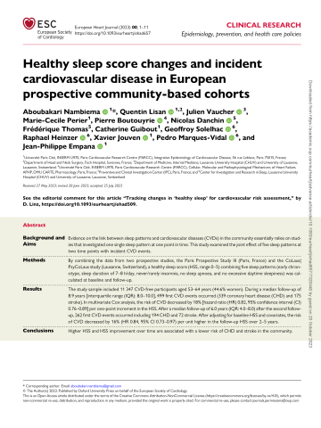 - Auteurs : Aboubakari NambiemaQuentin LisanJulien VaucherMarie-Cecile PerierPierre BoutouyrieNicolas DanchinFrédérique ThomasCatherine GuiboutGeoffroy SolelhacRaphael HeinzerXavier JouvenPedro Marques-VidalJean-Philippe Empana