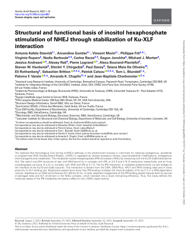 - Auteurs : Antonia Kefala StavridiAmandine GontierVincent MorinPhilippe FritVirginie RoparsNadia BarbouleCarine RaccaSagun JonchheMichael J MortenJessica AndreaniAlexey RakPierre LegrandAlexa Bourand-PlantefolSteven W HardwickDimitri Y ChirgadzePaul DaveyTaiana Maia de OliveiraEli RothenbergSébastien BrittonPatrick CalsouTom L BlundellPaloma Fernandez VarelaAmanda K ChaplinJean-Baptiste Charbonnier