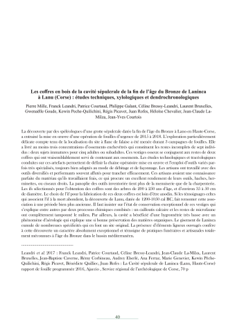 Les coffres en bois de la cavité sépulcrale de la fin de l’âge du Bronze de Laninca à Lanu (Corse) : études techniques, xylologiques et dendrochronologiques