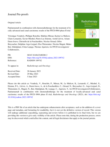 Panitumumab in combination with chemoradiotherapy for the treatment of locally-advanced anal canal carcinoma: Results of the FFCD 0904 phase II trial