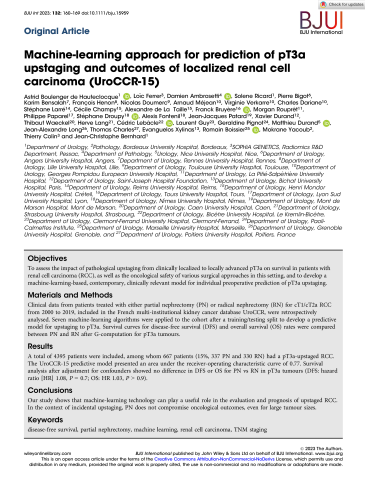 Machine‐learning approach for prediction of pT3a upstaging and outcomes of localized renal cell carcinoma ( UroCCR ‐15)