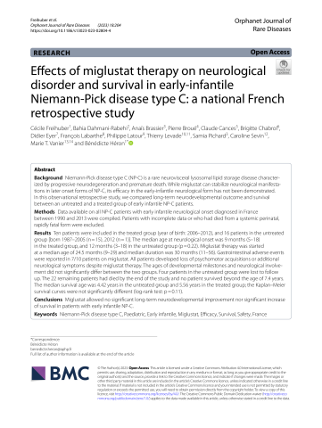 Effects of miglustat therapy on neurological disorder and survival in early-infantile Niemann-Pick disease type C: a national French retrospective study