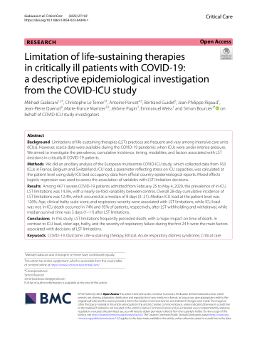 Limitation of life-sustaining therapies in critically ill patients with COVID-19: a descriptive epidemiological investigation from the COVID-ICU study