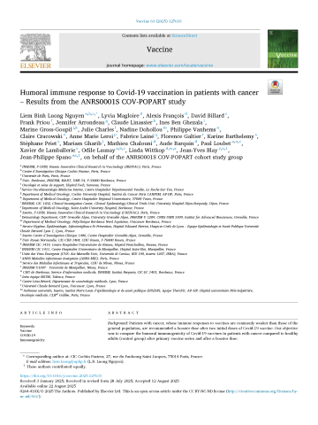 - Auteurs : Liem Binh Luong NguyenLyvia MagloireAlexis FrançoisDavid BillardFrank PriouJennifer ArrondeauClaude LinassierInes Ben GhezalaMarine Gross-GoupilJulie CharlesNadine DohollouPhilippe VanhemsClaire CracowskiAnne Marie LeroiFabrice LainéFlorence GaltierKarine BarthelemyStéphane PrietMariam GharibMathieu ChalouniAude BarquinPaul LoubetXavier de LamballerieOdile LaunayLinda WittkopJean-Yves BlayJean-Philippe Spano