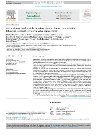 - Auteurs : Martin FaureLouis Le BivicMarouane BoukhrisAndrea CianciJean-David BlossierDounia MeddadLucie ChastaingtPhilippe LacroixJérôme JouanPierre-Marie PreuxNicole DarodesVictor AboyansJulien Magne