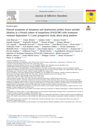 Diurnal symptoms of sleepiness and dysfunction predict future suicidal ideation in a French cohort of outpatients (FACE-DR) with treatment resistant depression: A 1-year prospective study about sleep markers