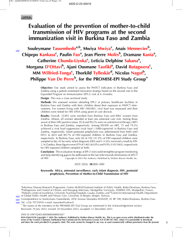 - Auteurs : Souleymane TassembedoMwiya MwiyaAnais MennecierChipepo KankasaPaulin FaoJean-Pierre MolèsDramane KaniaCatherine Chunda-LiyokaLeticia Delphine SakanaMorgana d'OttaviAjani Ousmane TaofikiDavid RutagweraM M Wilfried-TongaNicolas NagotPhilippe Van De Perre