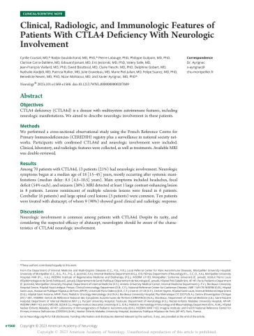 Clinical, Radiologic, and Immunologic Features of Patients With CTLA4 Deficiency With Neurologic Involvement