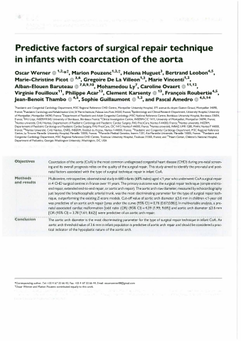 - Auteurs : Oscar WernerMarion PouzencHelena HuguetBertrand LeobonMarie-Christine C PicotGrégoire de La VilléonMarie VincentiAlban-Elouen BaruteauMohamed LyCaroline OvaertVirginie FouillouxPhilippe AcarClément KarsentyFrançois RoubertieJean-Benoit ThamboSophie GuillaumontPascal Amedro