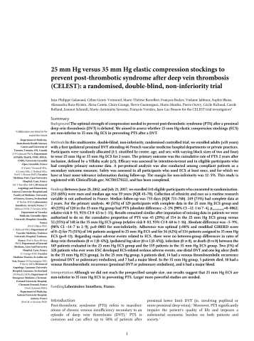 25 mm Hg versus 35 mm Hg elastic compression stockings to prevent post-thrombotic syndrome after deep vein thrombosis (CELEST): a randomised, double-blind, non-inferiority trial