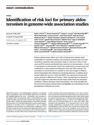 - Auteurs : Edith Le FlochTeresa CosentinoCasper K LarsenFelix BeuschleinMartin ReinckeLaurence AmarGian-Paolo RossiKelly de SousaStéphanie BaronSophie ChantalatBenjamin SaintpierreLivia LenziniArthur FrouinIsabelle Giscos-DouriezMatthis FereyAlaa B AbdellatifTchao MeatchiJean-Philippe EmpanaXavier JouvenChristian GiegerMelanie WaldenbergerAnnette PetersDaniele CusiErika SalviPierre MenetonMathilde TouvierMélanie DeschasauxNathalie Druesne-PecolloSheerazed BoulkrounFabio L Fernandes-RosaJean‐françois DeleuzeXavier JeunemaitreMaria-Christina Zennaro