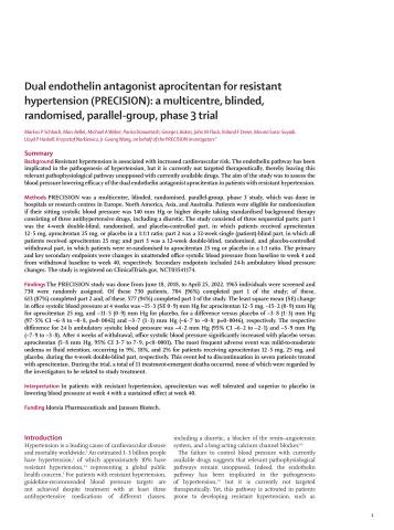 Dual endothelin antagonist aprocitentan for resistant hypertension (PRECISION): a multicentre, blinded, randomised, parallel-group, phase 3 trial