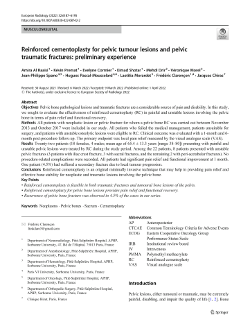 Reinforced cementoplasty for pelvic tumour lesions and pelvic traumatic fractures: preliminary experience