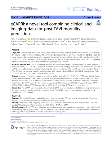 - Auteurs : Pierre-Jean LartaudBrahim HarbaouiAngelo Della CorteAïssam DjahnineOlivier NempontJean-Michel RouetAnna Cecilia VlachomitrouB. RicheMuriel RabilloudSalim Si-MohamedPhilippe DouekFrançois DerimayGilles RioufolPierre LantelmeLoïc Boussel