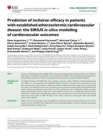 Prediction of inclisiran efficacy in patients with established atherosclerotic cardiovascular disease: the SIRIUS In-Silico modelling of cardiovascular outcomes