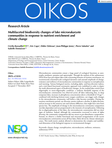 - Auteurs : Cécilia BarouilletEric CapoDidier DebroasJean-Philippe JennyPierre SabatierIsabelle Domaizon