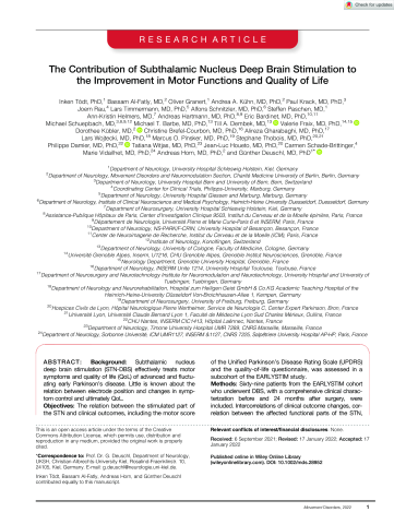 Inken TödtBassam Al‐fatlyOliver GranertAndrea A KühnPaul KrackJoern RauLars TimmermannAlfons SchnitzlerSteffen PaschenAnn‐kristin HelmersAndreas HartmannEric BardinetMichael SchuepbachMichael T BarbeTill A DembekValérie FraixDorothee KüblerChristine Brefel-CourbonAlireza GharabaghiLars WojteckiMarcus O PinskerStéphane ThoboisPhilippe DamierTatiana WitjasJean‐luc HouetoCarmen Schade‐brittingerMarie VidailhetAndreas HornGünther Deuschl