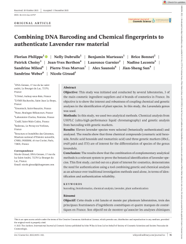 Intern J of Cosmetic Sci - 2021 - Philippe - Combining DNA Barcoding and Chemical fingerprints to authenticate Lavender raw.pdf