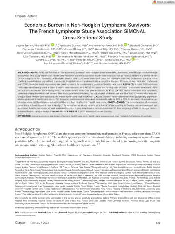Cancer - 2021 - Nerich - Economic burden in non‐Hodgkin lymphoma survivors The French Lymphoma Study Association SIMONAL.pdf
