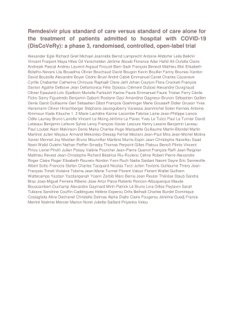 Remdesivir plus standard of care versus standard of care alone for the treatment of patients admitted to hospital with COVID-19 (DisCoVeRy): a phase 3, randomised, controlled, open-label trial