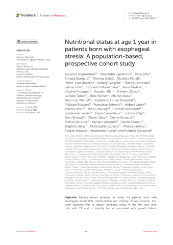 - Auteurs : Suzanne DepoortereAlexandre LapillonneRony SfeirArnaud BonnardThomas GelasNicoleta PanaitRabattu PyAudrey GuignotThierry LamireauSabine IrtanEdouard HabonimanaAnne BretonVirginie FouquetHossein AllalFrédéric ElbazIsabelle TalonAline RankeMichel AbelyJean-Luc MichelJoséphine Lirussi BorgnonPhilippe BuissonFrançoise SchmittHubert LardyThierry PetitYann ChaussyCorinne BorderonGuillaume LevardClara CremillieuxCécilia TolgJean BreaudOlivier JabyCéline GrossosPhiline de VriesMyriam ArnouldCécile PelatanStephan GeissChristophe LaplaceMaéva KyhengAudrey NicolasMadeleine AumarFrédéric Gottrand