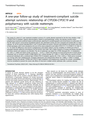 - Auteurs : Eva Peñas-LledóSebastien GuillaumeFernando de AndrésAna Cortés-MartínezJonathan DuboisJean Pierre KahnMarion LeboyerÉmilie OliéAdrián LlerenaPhilippe Courtet