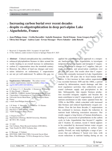 Increasing carbon burial over recent decades despite re-oligotrophication in deep peri-alpine Lake Aiguebelette, France