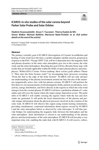 - Auteurs : Vladimir KrasnoselskikhBruce T. TsurutaniThierry Dudok de WitSimon WalkerMichael BalikhinMarianne Balat-PichelinMarco VelliStuart D. BaleMilan MaksimovicOleksiy AgapitovWolfgang BaumjohannMatthieu BerthomierRoberto BrunoSteven R. CranmerBart de PontieuDomingos de Sousa MenesesJonathan EastwoodRobertus ErdelyiRobert ErgunViktor FedunNatalia GanushkinaAntonella GrecoLouise HarraP. HenriTimothy HorburyHugh HudsonJustin KasperYuri KhotyaintsevMatthieu KretzschmarSäm KruckerHarald KucharekYves LangevinBenoît LavraudJean-Pierre LebretonSusan LepriMichael LiemohnPhilippe LouarnEberhard MoebiusForrest MozerZdenek NemecekOlga PanasencoA. RetinoJana SafrankovaJack ScudderSergio ServidioLuca Sorriso-ValvoJan SoučekAdam SzaboAndris VaivadsGrigory VeksteinZoltan VörösTeimuraz ZaqarashviliGaetano ZimbardoAndrei Fedorov
