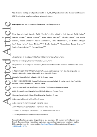 Céline CapronLouis JanuelGaëlle VievilleSylvie JaillardPaul KuentzGaëlle SalaunGwenaël NadeauPatrice ClementMarie Pierre BrechardBérénice HerveJean Michel DupontNicolas GruchyPascal ChambonFatma AbdelhediEric DahlenPhilippe VagoRadu HarbuzIngrid PlottonCharles CouttonMarc‐antoine Belaud-RotureauCaroline Schluth-BolardFrançois Vialard