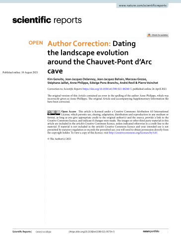 Author Correction: Dating the landscape evolution around the Chauvet-Pont d’Arc cave