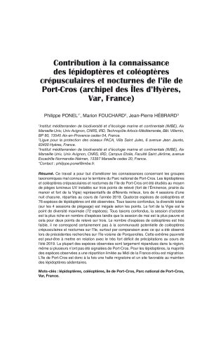 Contribution à la connaissance des lépidoptères et coléoptères crépusculaires et nocturnes de l'île de Port-Cros (archipel des Îles d'Hyères, Var, France)