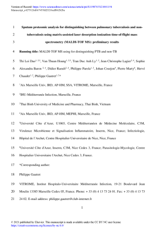 Sputum proteomic analysis for distinguishing between pulmonary tuberculosis and non-tuberculosis using matrix-assisted laser desorption ionization time-of-flight mass spectrometry (MALDI-TOF MS): preliminary results