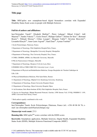 - Auteurs : Ian-Christopher TanohElisabeth MaillartPierre M LabaugeMikael CohenAdil MaaroufSandra VukusicCécile DonzéPhilippe GallienJérôme de SèzeBertrand BourreThibault MoreauCéline LouapreMorgane ValléeSéverine BieuveletLissandra KlaeyléAnne-Laure ArgoudSaad ZinaïAyman Tourbah