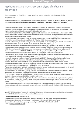 Fichiers liés : Javelot et al-2021-Psychotropics and COVID-19.pdf