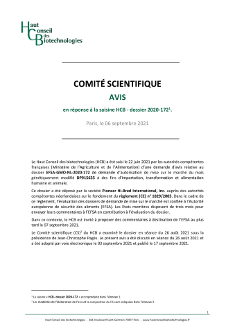 AVIS en réponse à la saisine HCB - dossier 2020-172. Paris, le 06 septembre 2021