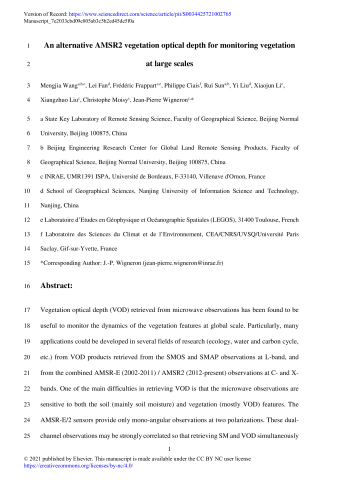 • Auteurs : Mengjia WangSassan S SaatchiFrédéric FrappartPhilippe CiaisRui SunYi LiuXiaojun LiXiangzhuo LiuChristophe MoisyWigneron J.-P.