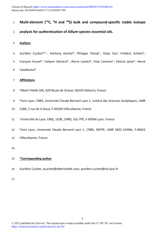 Multi-element (13C, 2H and 34S) bulk and compound-specific stable isotope analysis for authentication of Allium species essential oils