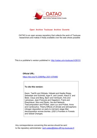 - Auteurs : Taeoh KwonHideaki ShibataSebastian Kepfer-RojasInger SchmidtKlaus LarsenClaus BeierBjörn BergKris VerheyenJean-Francois LamarqueFrank HagedornNico EisenhauerIka DjukicKappel Schmidt IngerSteenberg Larsen KlausFrancois Lamarque JeanAdriano CalimanAlain PaquetteAlba Gutiérrez-GirónAlessandro PetragliaAlgirdas AugustaitisAmélie SaillardCarolina Ruiz-Fernández AnaI. Sousa AnaI. Lillebø AnaRocha Gripp Anderson DaAndrea LamprechtAndreas BohnerAndré-Jean FrancezAndrey MalyshevAndrijana AndrićAngela StanisciAnita ZollesAnna AvilaAnna-Maria VirkkalaAnne ProbstAnnie OuinA. Khuroo AnzarArne VerstraetenArtur StefanskiAurora GaxiolaBart MuysBeatriz GozaloBernd AhrendsBo YangBrigitta ErschbamerRodríguez Ortíz Carmen EugeniaT. Christiansen CasperCéline MeredieuCendrine MonyCharles NockChiao-Ping WangChristel BaumChristian RixenChristine DelireChristophe PiscartChristopher AndrewsCorinna RebmannCristina BranquinhoDick JanDirk WundramDušanka VujanovićCarol Adair E.Eduardo Ordóñez-RegilR. Crawford EdwardF. Tropina ElenaElisabeth HornungElli GronerÉric LucotEsperança GaciaEsther LévesqueEvanilde BeneditoA. Davydov EvgenyPadilha Bolzan FábioT. Maestre FernandoFlorence Maunoury-DangerFlorian KitzFlorian HofhanslFlurin SutterAlmeida Lobo Francisco DeLeadro Souza FrancoFranz ZehetnerKouamé Koffi FulgenceGeorg WohlfahrtGiacomo CertiniDaiane Pinha GiseleGrizelle GonzálezGuylaine CanutHarald PauliA. Bahamonde HéctorHeike FeldhaarHeinke JägerCristina Serrano HelenaHélène VerheydenHelge BruelheideHenning MeesenburgHermann JungkunstHervé JactelHiroko KurokawaIan YesilonisInara MeleceVan Halder IngeGarcía Quirós InmaculadaIstván FeketeIvika OstonenJana BorovskáJavier RoalesHasan Shoqeir JawadJean-Christophe LataJean-Luc ProbstJeyanny VijayanathanJiri DolezalJoan-Albert Sanchez-CabezaJoël MerletJohn LoehrVon Oppen JonathanJörg LöfflerBenito Alonso José LuisJosé-Gilberto Cardoso-MohedanoJosep PenuelasC. Morina JosephDarío Quinde JuanJ. Jiménez JuanM. Alatalo JuhaJulia SeeberJulia KemppinenJutta StadlerKaie KriiskaKarel van den MeerscheKaribu FukuzawaKatalin SzlaveczKatalin JuhosKatarína GerhátováKate LajthaKatie JenningsKatja TielbörgerKazuhiko HoshizakiKen GreenKlaus SteinbauerLaryssa PazianotoLaura DienstbachLaura YahdjianJ. Williams LauraLaurel BrighamLee HannaDen Brink Liesbeth VanLindsey RustadLourdes MorillasSilva Carneiro LucianaDi Martino LucianoLuis VillarFernandes Tavares Luísa AlícidaMadison MorleyManuela WinklerMarc LebouvierMarcello TomaselliMarcus SchaubMaria GlushkovaAlmazan Torres Maria GuadalupeDe Graaff Marie-AnneMarie-Noëlle PonsMarijn BautersMarina MazónMark FrenzelMarkus WagnerMarkus DidionMaroof HamidMarta LopesMartha AppleMartin WeihMatej MojsesMatteo GualminiMatthew VadeboncoeurMichael BierbaumerMichael DangerMichael Scherer-LorenzenMichal RůžekMichel IsabellonDi Musciano MicheleMichele CarbognaniMiglena ZhiyanskiMihai PuşcaşMilan BarnaMioko AtakaMiska LuotoH. Alsafaran MohammedNadia BarsoumNaoko TokuchiNathalie KorboulewskyNicolas LecomteNina FilippovaNorbert HölzelOlga FerlianOscar RomeroOsvaldo Pinto-JrPablo PeriDan Turtureanu PavelPeter HaasePeter MacreadieB. Reich PeterPetr PetříkPhilippe CholerPierre MarmonierQuentin PonetteDettogni Guariento RafaelRafaella CanessaRalf KieseRebecca HewittRobert WeigelRóbert KankaCazzolla Gatti RobertoLemes Martins RodrigoRomà OgayaRomain GeorgesG. Gavilán RosarioSally WittlingerSara PuijalonSatoshi SuzukiSchädler MartinSchmidt AnjaSébastien GogoSilvio SchuelerSimon DrollingerSimone MereuSonja WipfStacey Trevathan-TackettStefan StollStefan LöfgrenStefan TrogischSteffen SeitzStephan GlatzelSusanna VennSylvie DoussetTaiki MoriTakanori SatoTakuo HishiTatsuro NakajiTheurillat Jean-PaulThierry CambouliveThomas SpiegelbergerThomas ScholtenJ. Mozdzer ThomasTill KleinebeckerTomáš RusňákTshililo RamaswielaTsutom HiuraTsutomu EnokiTudor-Mihai UrsuDi Cella Umberto MorraUte HamerValentin KlausDi Cecco ValterVanessa RegoVeronika FontanaVeronika PiscováVincent BretagnolleVincent MaireVinicius FarjallaVittoz PascalWenjun ZhouWentao LuoWilliam ParkerYasuhiro UtsumiYuji KominamiZsolt KotroczóZsolt TóthHélène Verheyden
