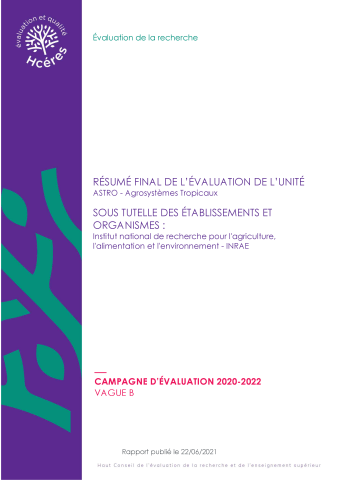 Résumé final de l'évaluation de l'unité ASTRO - Agrosystèmes Tropicaux, sous tutelle des établissements et organismes Institut national de recherche pour l'agriculture, l'alimentation et l'environnement - INRAE