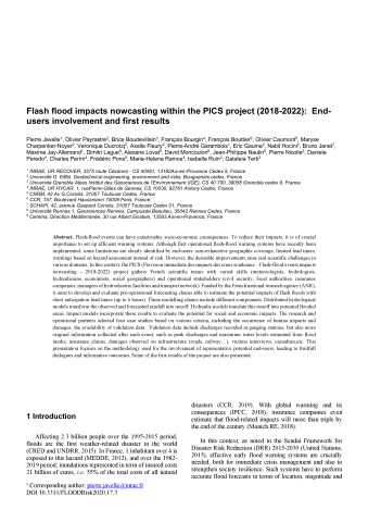 Flash flood impacts nowcasting within the PICS project (2018-2022): End-users involvement and first results
