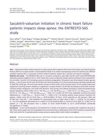 Sacubitril‐valsartan initiation in chronic heart failure patients impacts sleep apnea: the ENTRESTO‐SAS study