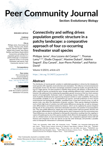 Connectivity and selfing drives population genetic structure in a patchy landscape: a comparative approach of four co-occurring freshwater snail species